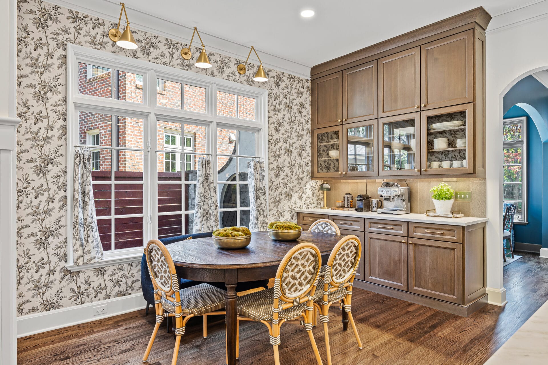 Colonial RevivalCreating wider cased openings instead of fully removing walls to maintain a sense of formal separation while improving flow.
